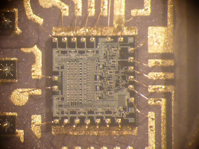Kolejny wyświetlacz od TI, ale dziwią mnie jego monstrualne wymiary w stosunku do wymiarów wyświetlanej cyfry. Wyświetlacz ma długość 25mm, a wyświetlana cyfra zaledwie 7mm. Nie wiem też, po co mu aż 16 nóżek. Za to wyraźnie widać logo producenta, a na strukturze jest napis SN34795D. W internecie na ten temat nie ma żadnych informacji.Litronix DL1414T